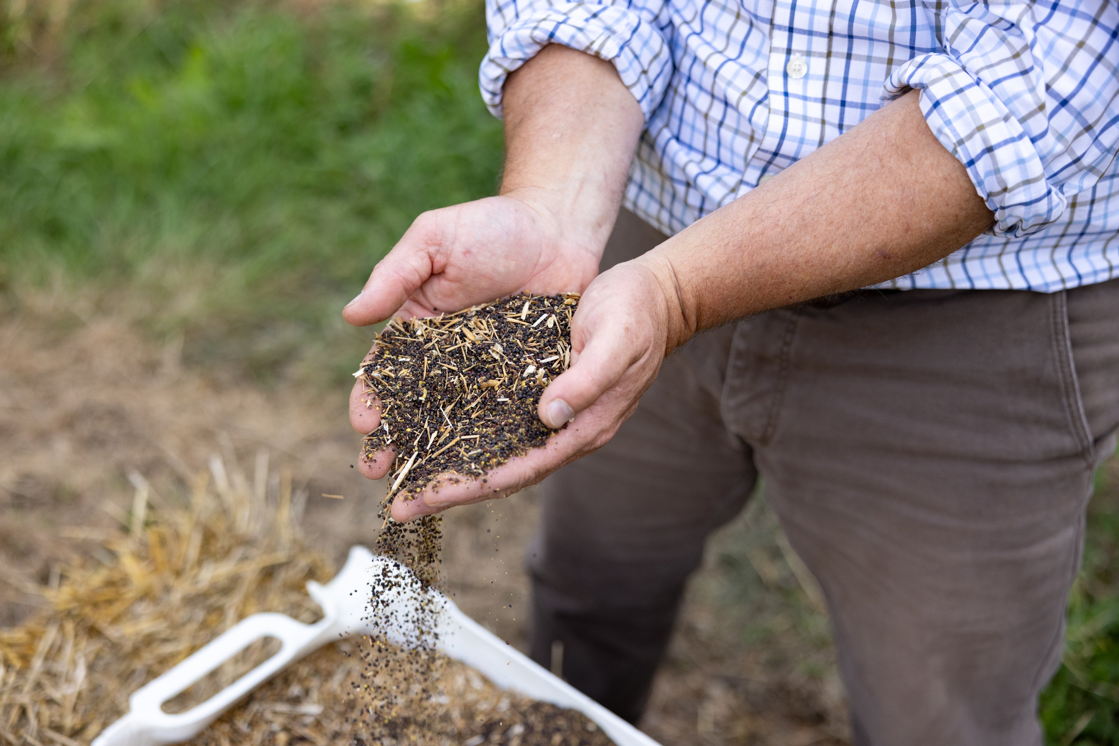 Graham scatters a range of seed for a variety of species: “I use naked oats, which are soft smaller seeds, for yellowhammers, linnets and reed buntings. Rape dressings work well and I’ve found white millet more popular than red.” Hand-feeding takes a lot of Graham’s spare time. In the winter he is out most days for an hour, scattering seed by hand in his cover crops or hedgerows, so that the little birds can feed safe from predators. In the early summer the turtle doves get the benefit. He said: “Initially, the RSPB advised against feeding turtle doves to reduce disease risk, but we’ve been doing it for generations and after seeing it work here, they asked me what I fed them and have adopted my method and mix as part of their conservation strategy.”